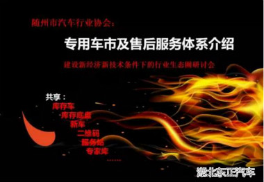 隨州市汽車行業(yè)協(xié)會(以下簡稱協(xié)會)在隨州市專汽博覽中心了召開了隨州市汽車行業(yè)協(xié)會會長會議暨專用車+互聯(lián)網(wǎng)垂直生態(tài)圈研討會。會議由協(xié)會會長肖志強主持,參會領導有市工商聯(lián)副主席蔣代斌,參會會長單位有重汽華威總經(jīng)理陳勇、湖北三環(huán)鑄造原黨委書記章有亭、中航工業(yè)奧龍副董事長陳廣濱、湖北潤力董事長尚傳書、湖北大力董事長劉錦元、湖北五環(huán)董事長王小華、成龍威總經(jīng)理劉鼎、廈工楚勝副總經(jīng)理王小康、東風隨專副總經(jīng)理銀全林等23人出席。