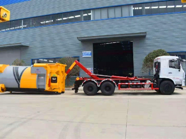 勾臂垃圾車【車廂可卸式垃圾車】車體和垃圾箱可完全分離,由液壓系統(tǒng)來完成收箱/放箱,在平日里可將車載垃圾箱放置到各個(gè)垃圾收集點(diǎn),待垃圾收集滿后,該車可直接開赴收集點(diǎn),通過液壓系統(tǒng)的操控,可將垃圾車后座上加裝的勾臂放下,掛住站內(nèi)箱體前端的連接點(diǎn),將垃圾箱拉**車體的后座上,此時(shí)即可開動(dòng)車輛,將垃圾運(yùn)送垃圾處理站內(nèi),進(jìn)行自卸式傾倒,優(yōu)點(diǎn)就是可一車配多斗,一輛車就可以維持?jǐn)?shù)個(gè)垃圾收集站的運(yùn)轉(zhuǎn),效率高,且箱體為密封式設(shè)計(jì),不會(huì)造成二次污染。