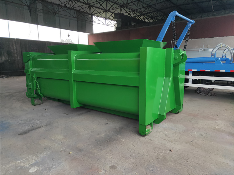 勾臂垃圾車配套移動垃圾箱外形以上梯形下長方形、上弧形下長方形、上弧形下弧形、長方形為主,箱體兩邊各帶一對或二對垃圾投入口或頂部開口,帶蓋式箱體能夠避免風將輕質(zhì)垃圾(塑料袋,廢紙等)吹散和防止雨水進入箱內(nèi);箱體底部帶一對鐵輪方便吊上卸下時垃圾箱的移動,箱體后部可開啟【帶鎖緊機構(gòu),配備密封條】。勾臂垃圾箱外觀形狀、大小容積可根據(jù)用戶需求定制加工。