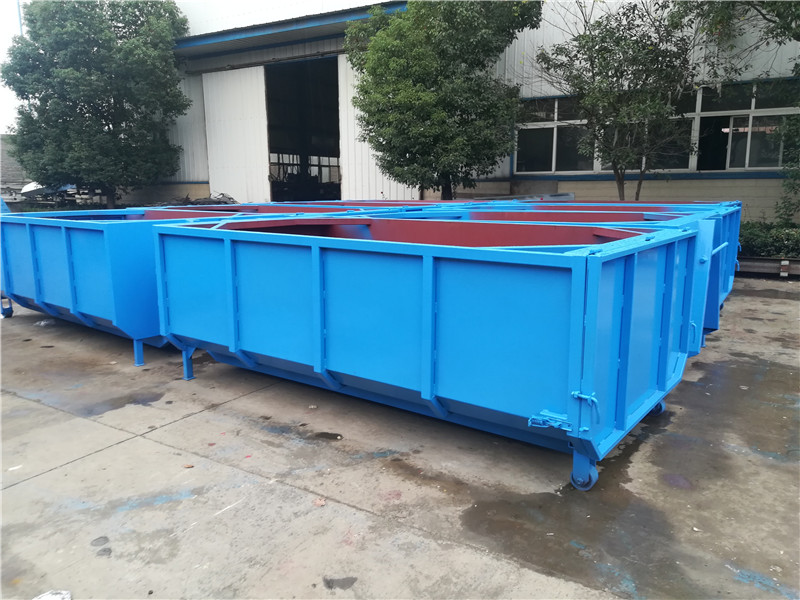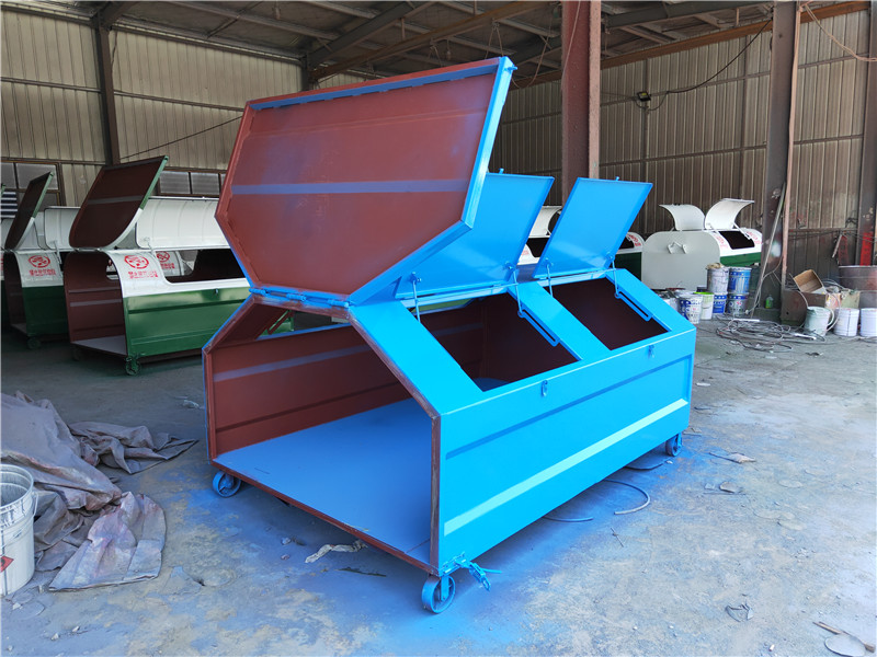 勾臂垃圾車配套移動垃圾箱外形以上梯形下長方形、上弧形下長方形、上弧形下弧形、長方形為主,箱體兩邊各帶一對或二對垃圾投入口或頂部開口,帶蓋式箱體能夠避免風將輕質垃圾(塑料袋,廢紙等)吹散和防止雨水進入箱內;箱體底部帶一對鐵輪方便吊上卸下時垃圾箱的移動,箱體后部可開啟【帶鎖緊機構,配備密封條】。勾臂垃圾箱外觀形狀、大小容積可根據(jù)用戶需求定制加工。