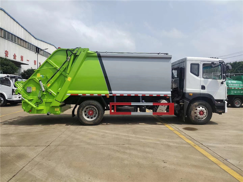 上裝配置:廂體圓弧設(shè)計(jì)(增強(qiáng)廂體承受力),Q345錳鋼板(高強(qiáng)度耐磨抗壓材質(zhì),罐體試用壽命更長),前后雙向壓縮,推鏟卸料,長源液壓泵,中梅多路換向閥,維森博樂油缸,高耐壓液壓油管,西門子PLC一鍵系統(tǒng)(駕駛室內(nèi)外均可操作),移動(dòng)遙控器箱體操作,雙污水箱(前后各一個(gè)),邊燈,高位示廓燈,夜間作業(yè)燈。