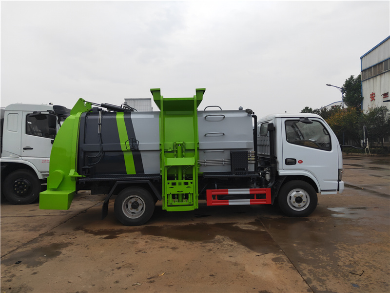 方罐式餐廚垃圾車:弧形廂體,箱體內(nèi)可實(shí)現(xiàn)固液分離,推鏟卸料,后蓋液壓開(kāi)啟/鎖緊(帶耐磨橡膠密封條密封-后門關(guān)閉后滴水不漏),后門液壓鎖緊防誤操作功能,掛桶式提升機(jī),可配合120升、240升標(biāo)準(zhǔn)垃圾桶使用,清洗裝置(帶水箱、液壓馬達(dá)帶動(dòng)高壓泵)。