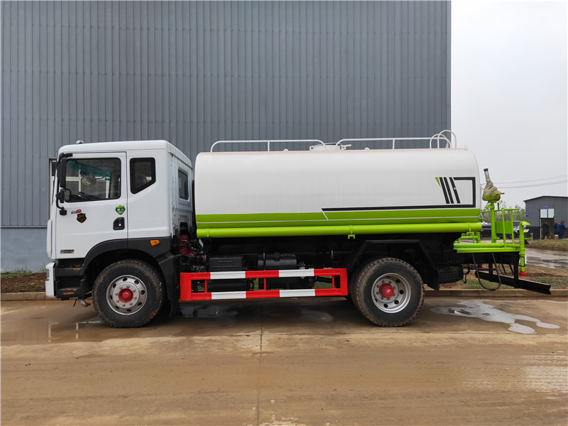 灑水車工作主要由發(fā)動(dòng)機(jī)帶動(dòng)變速箱,變速箱上安裝的取力器帶動(dòng)灑水車水泵產(chǎn)生動(dòng)力,將罐體內(nèi)部的水通過管路噴灑出去,水泵可自吸自排。也可根據(jù)用戶需求選裝抑塵霧炮。