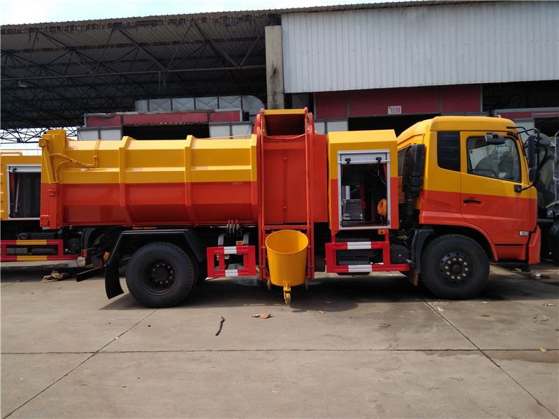 掛桶式糞污糞便清運(yùn)車(chē)配掛桶提升機(jī),可配合垃圾桶使用,通過(guò)液壓提升裝置可將垃圾桶內(nèi)污泥、糞污慢慢提升傾倒入車(chē)廂內(nèi),裝滿后運(yùn)輸?shù)绞占c(diǎn)進(jìn)行自卸式傾倒。適用于全國(guó)通用標(biāo)準(zhǔn)的120升、240升垃圾桶,鐵桶、塑料桶等。優(yōu)點(diǎn)在于一臺(tái)車(chē)可配多個(gè)垃圾桶使用,密封好,運(yùn)輸途中滴水不漏,駕駛室內(nèi)外兩用操控,司機(jī)師傅不下車(chē)在駕駛室內(nèi)即可完成箱體卸料。廣泛用于收運(yùn)含水污泥、糞污糞便、含水垃圾、淤泥等。